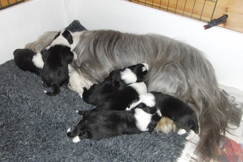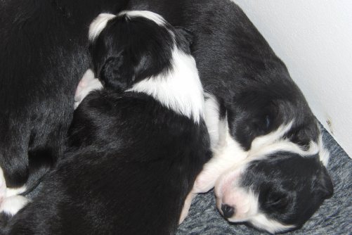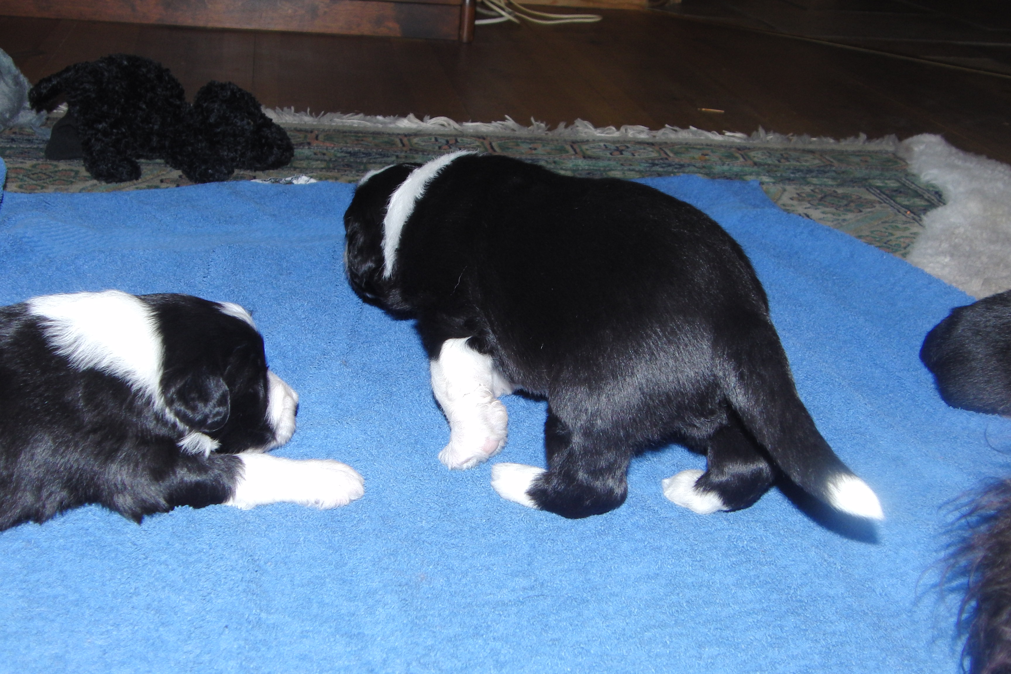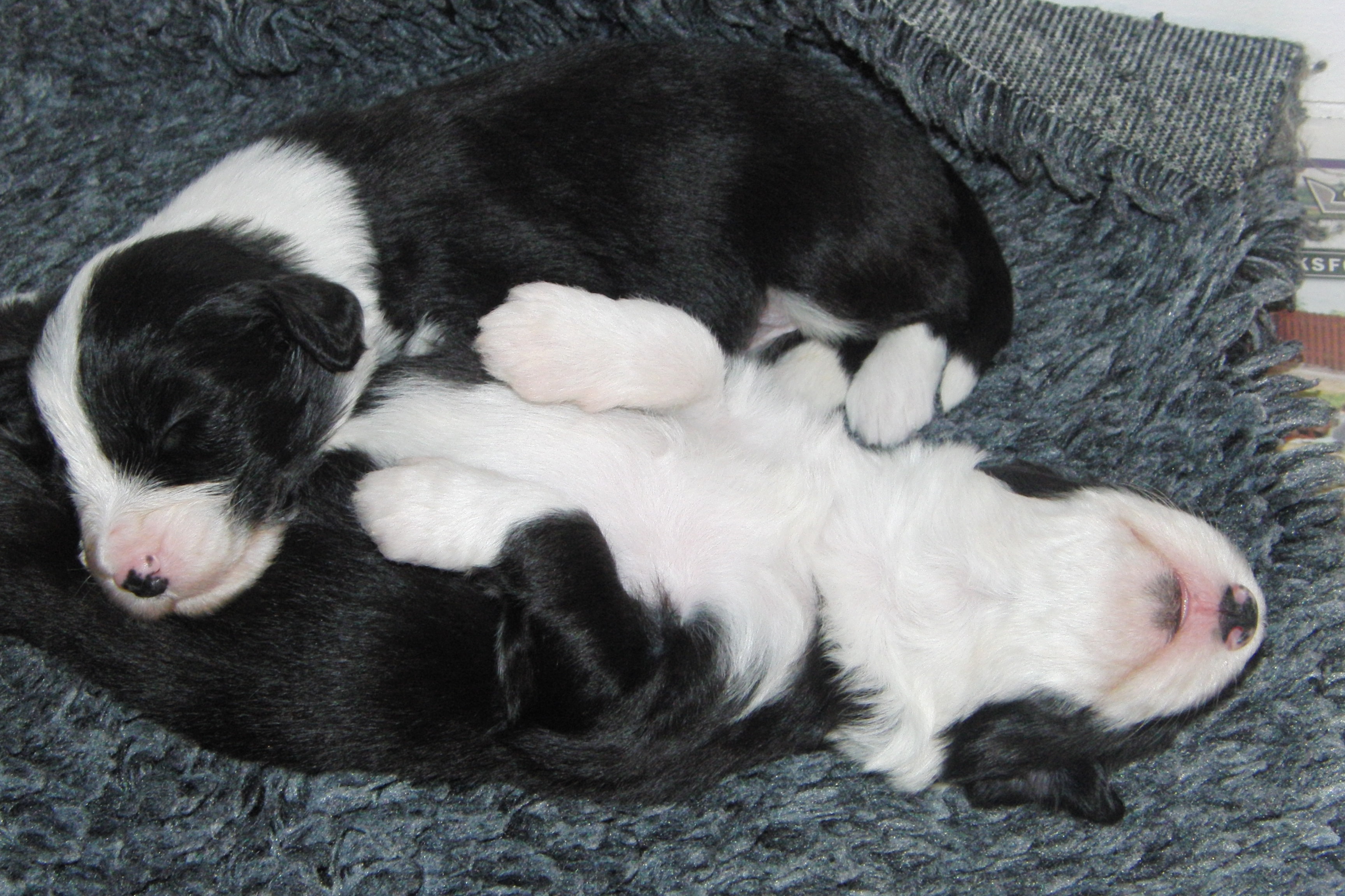 Under de sista dagarna har valparna börjat att stappla fram på vingliga ben. Det går bättre och bättre….. Däremellan måste man sova.