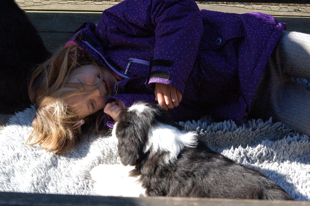 I helgen kom våren! Vi har sett de första vårblommorna, har varit på promenad utan jacka och dessutom fikat utomhus i solen. Vi hade besök av Katarina och hennes barn Anton och Alva som passade på att mysa med valparna. De hade Melvin (Vallklanens Lord Loch Melfort) med sig.