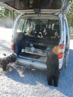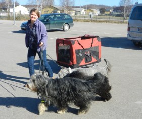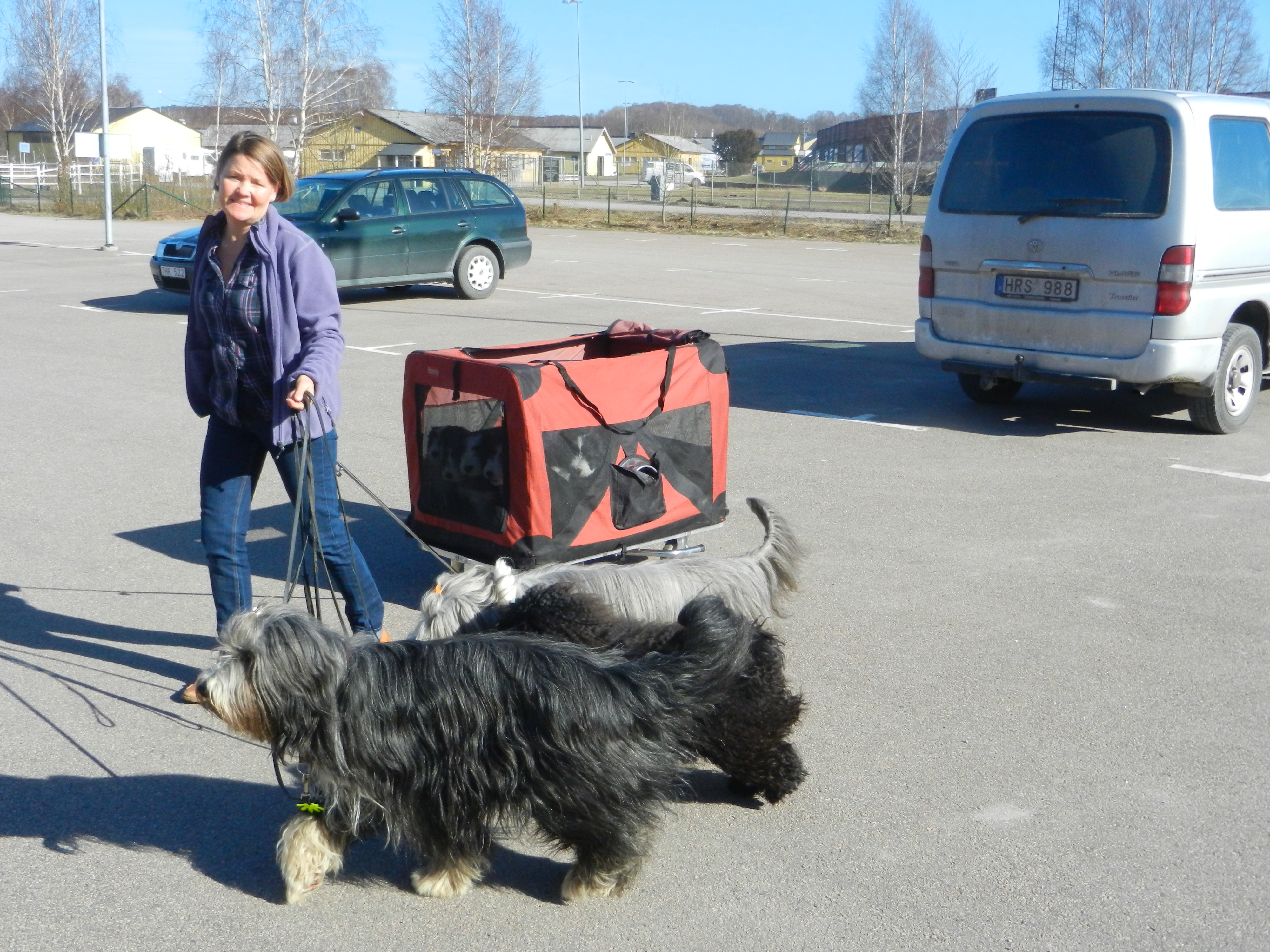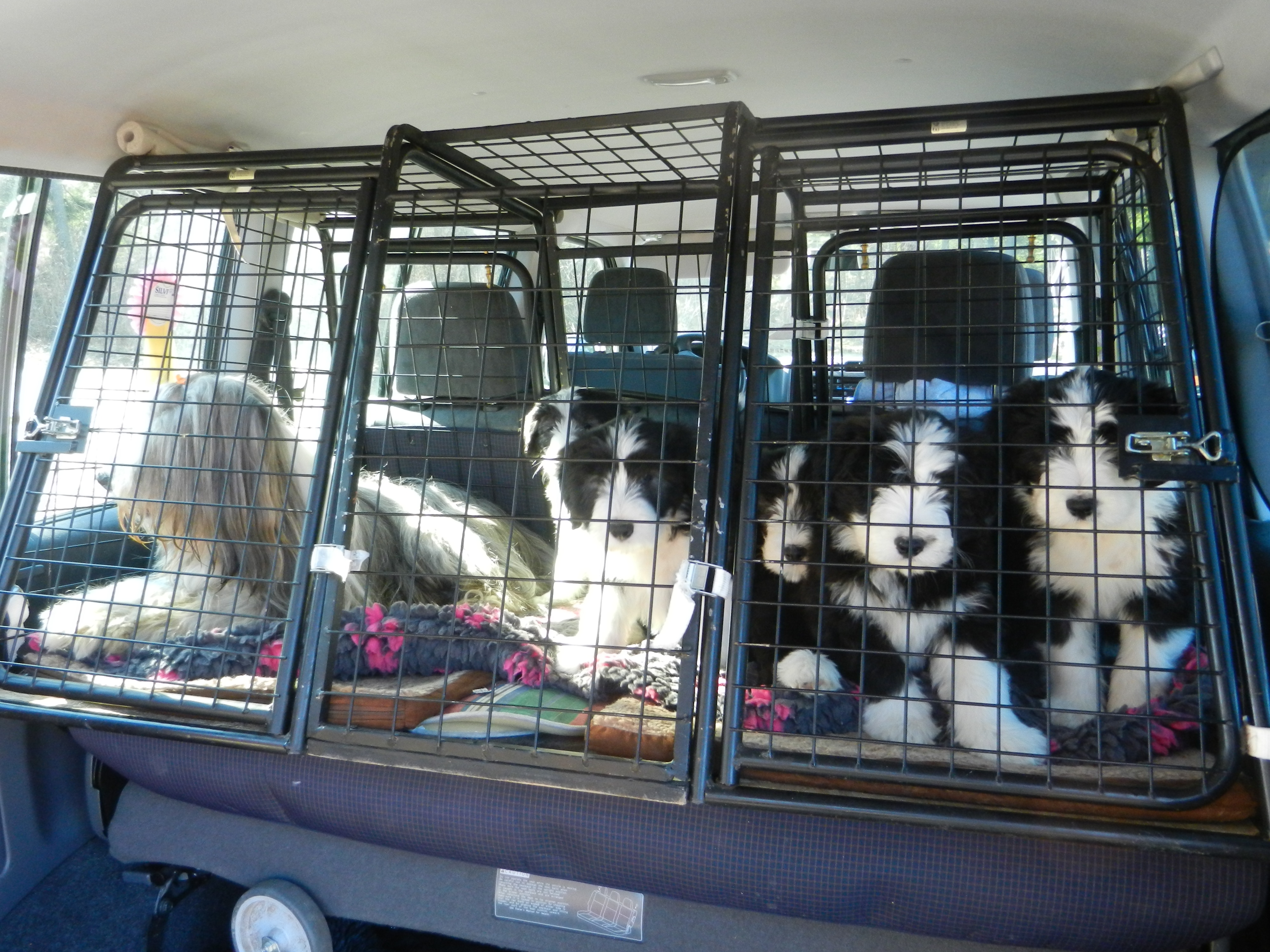 Igår blev valparna 8 veckor gamla och vi åkte till veterinären i Halmstad för att besiktiga dem. (Tur man har trimbord på hjul och en stor bur.)
