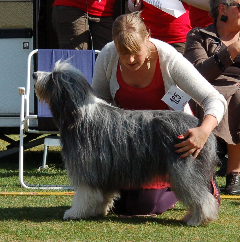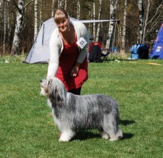För Ella gick det ännu bättre. Hon var ensam som bearded collie, men blev BIR och därefter vann hon gruppfinalen. Hon fick vara med i Best in Show där hon dessvärre inte blev placerad…men vi är ändå nöjda med resultatet! Det var en trevlig dag och en trevlig domare.