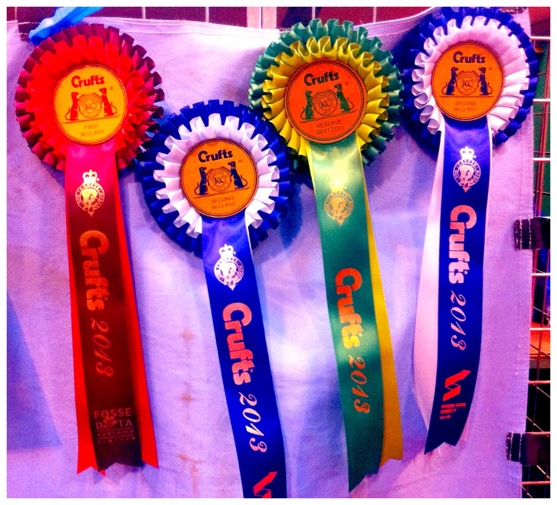 Esters pappa Rya (CH Bubbleton Hot’n Spicy) blev ju BIR förra året på Crufts, och i år blev han 2a bästa hane med reserv CACIB. Anna var överlycklig att få visa honom.