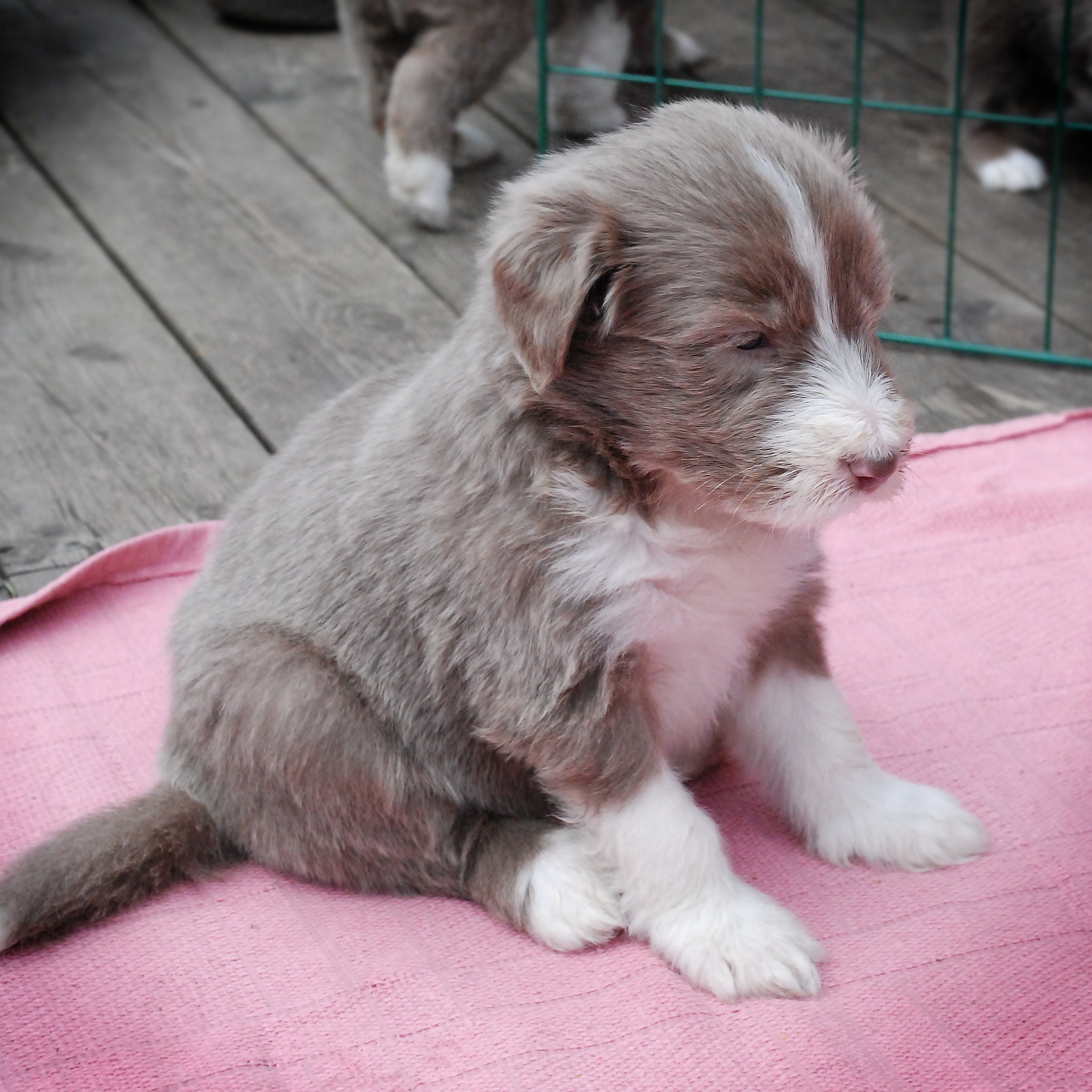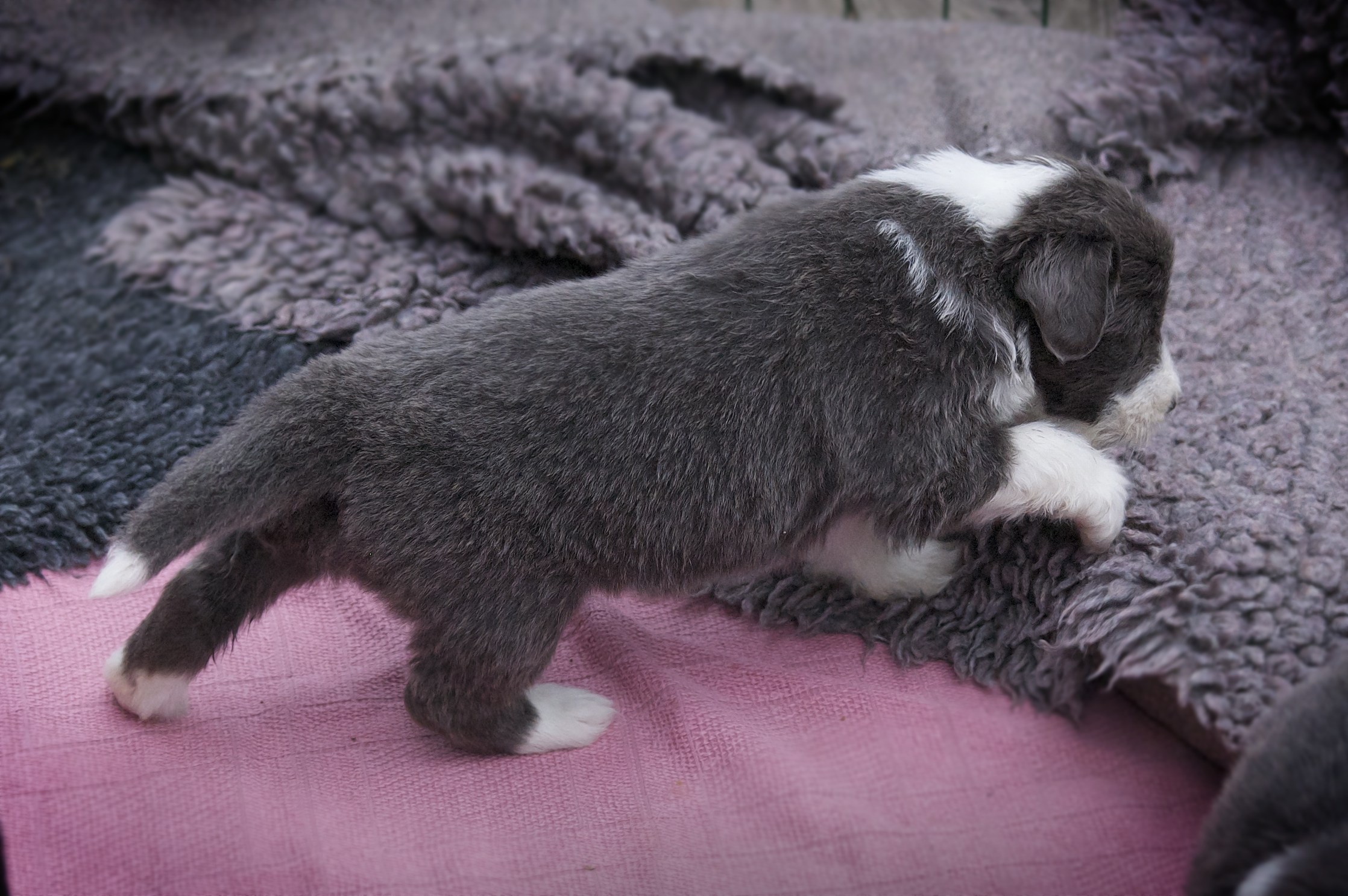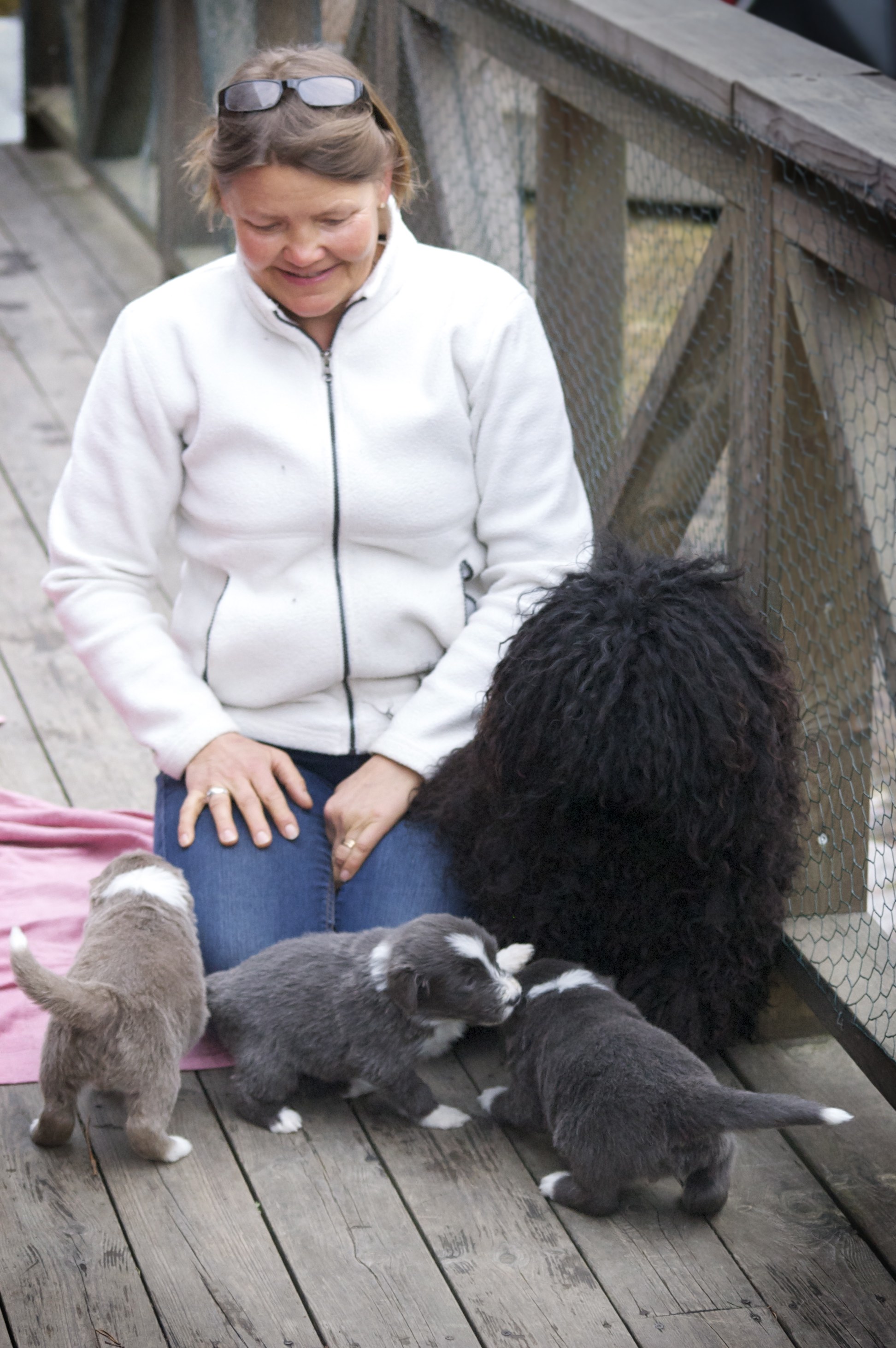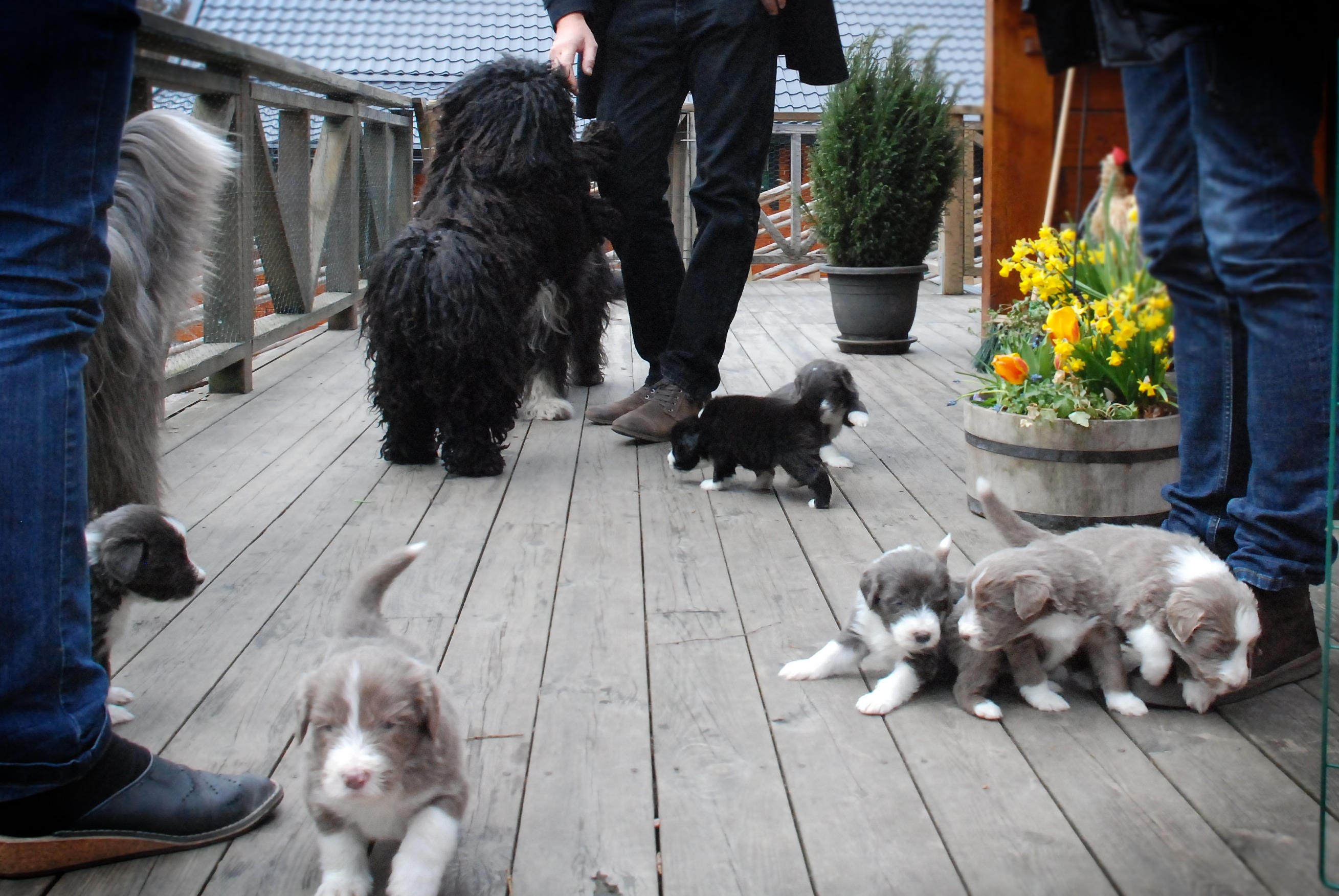 Vi hoppas nu på lite varmare väder och solsken, för då ska valparna få gå ut i trädgården.