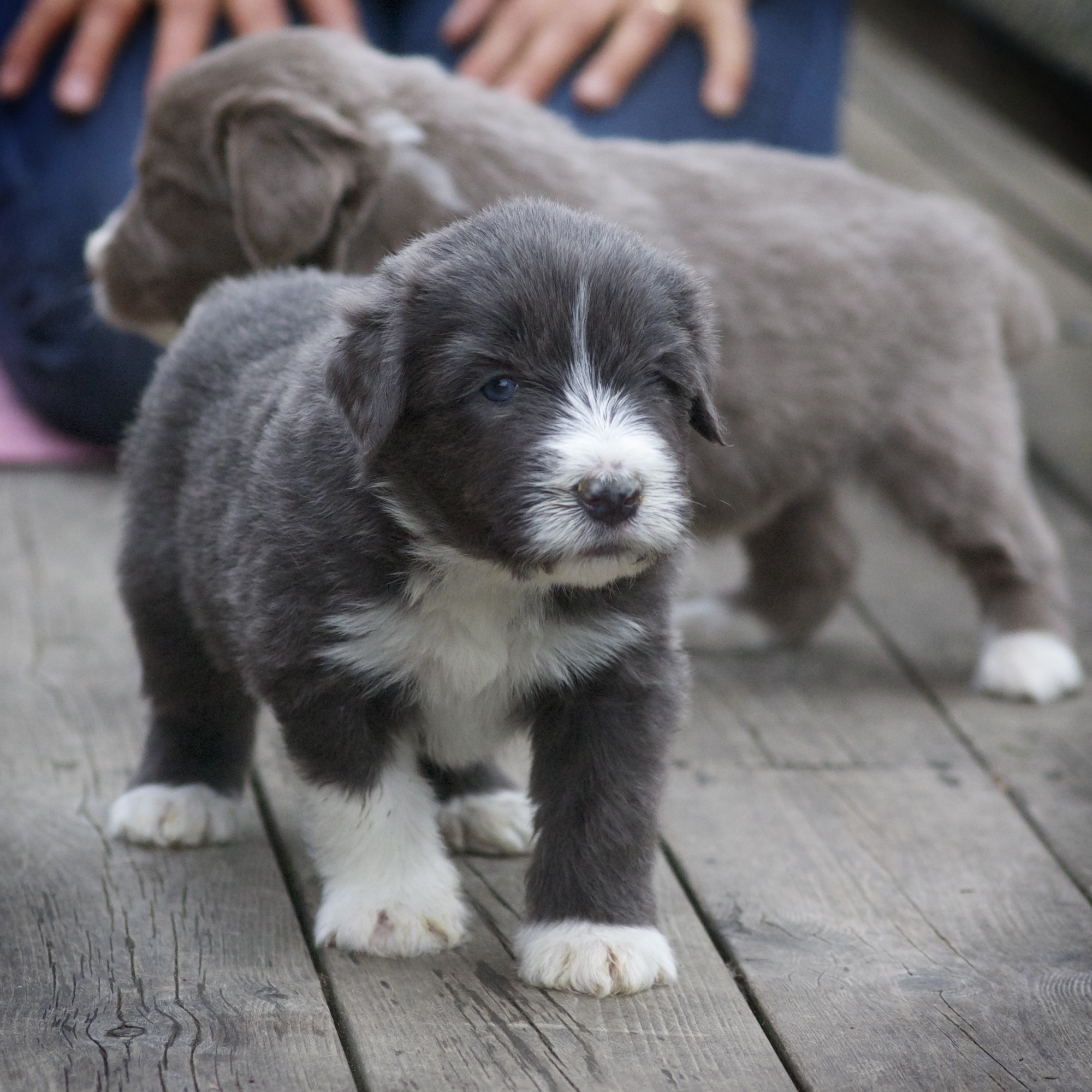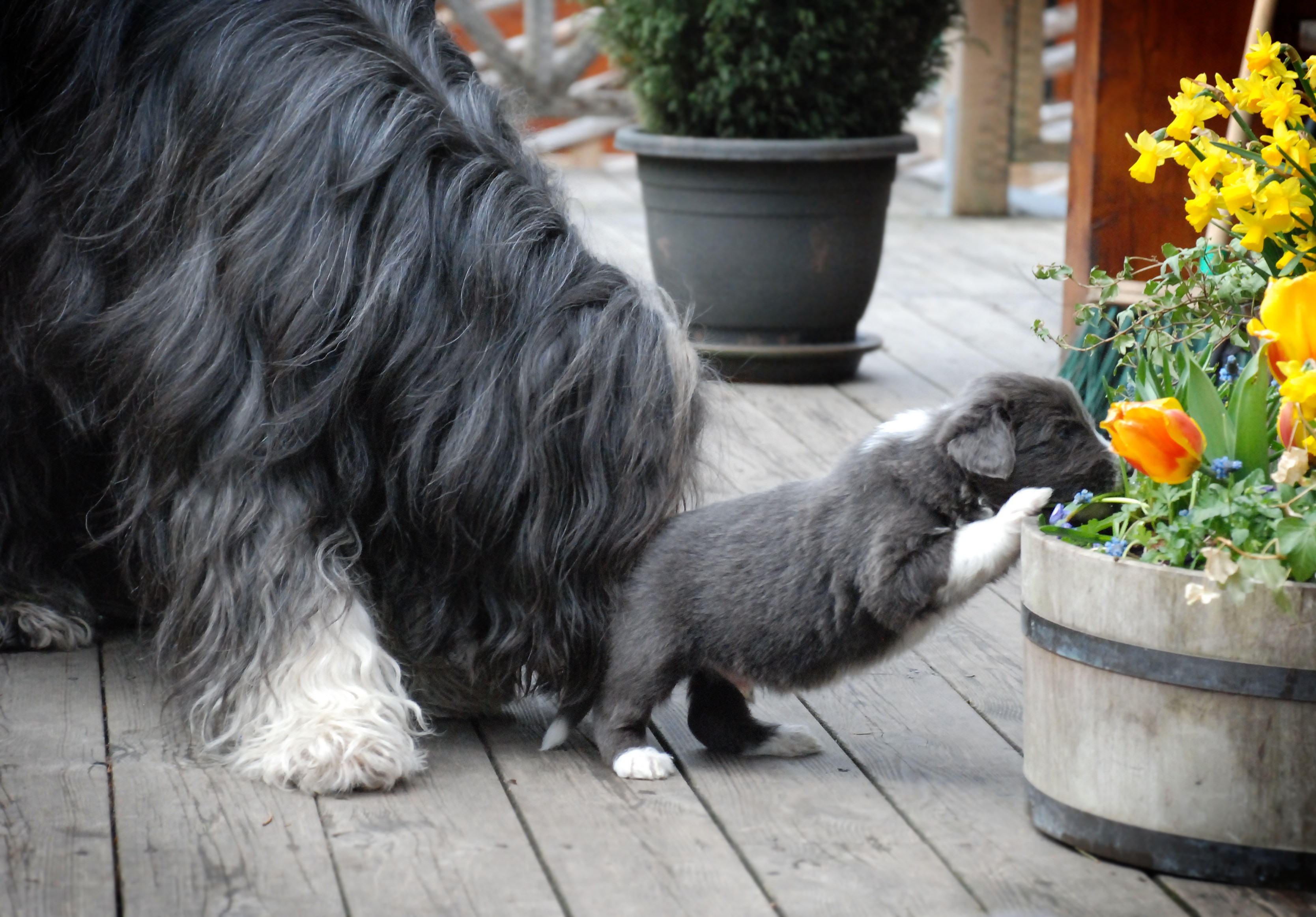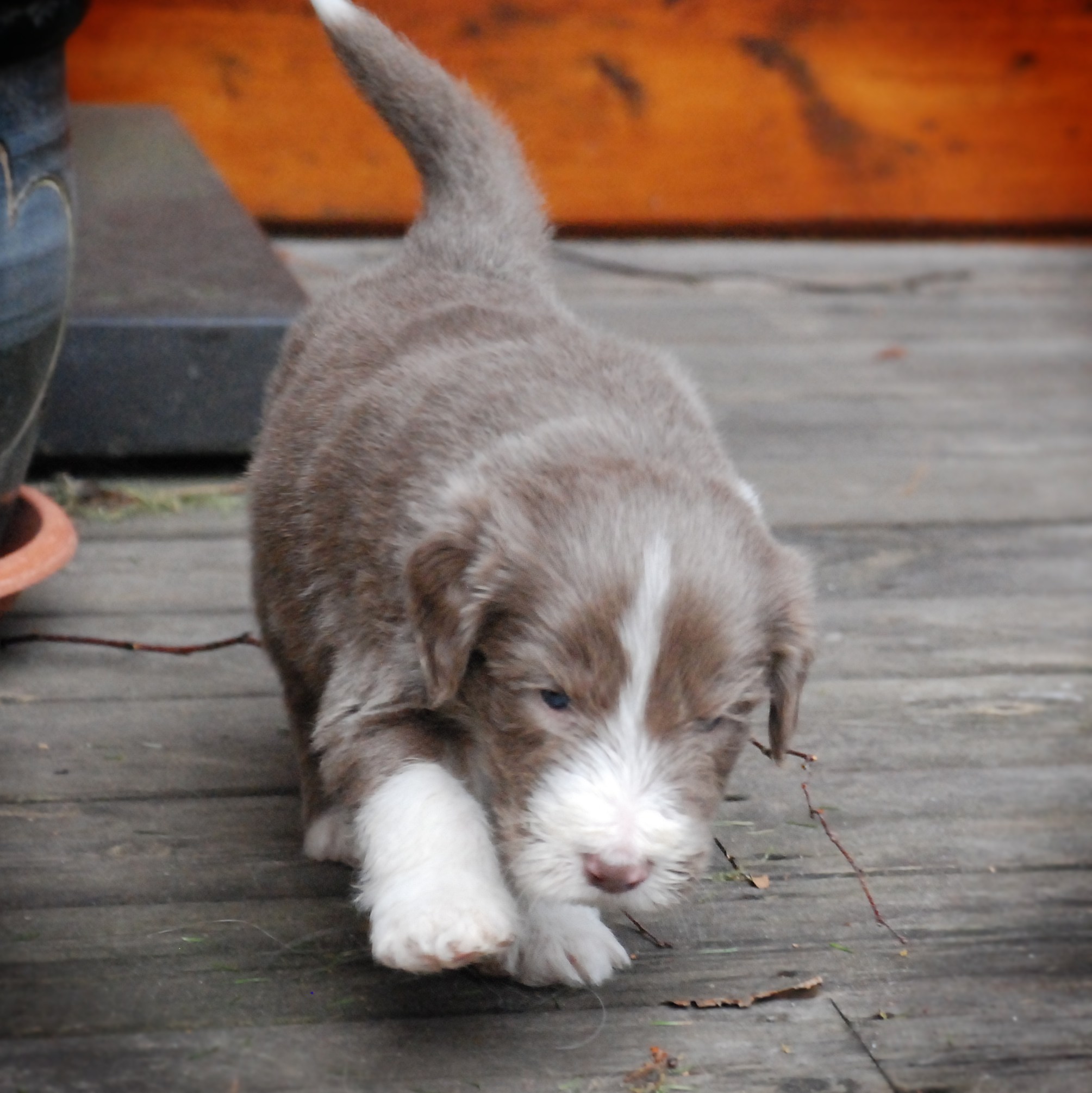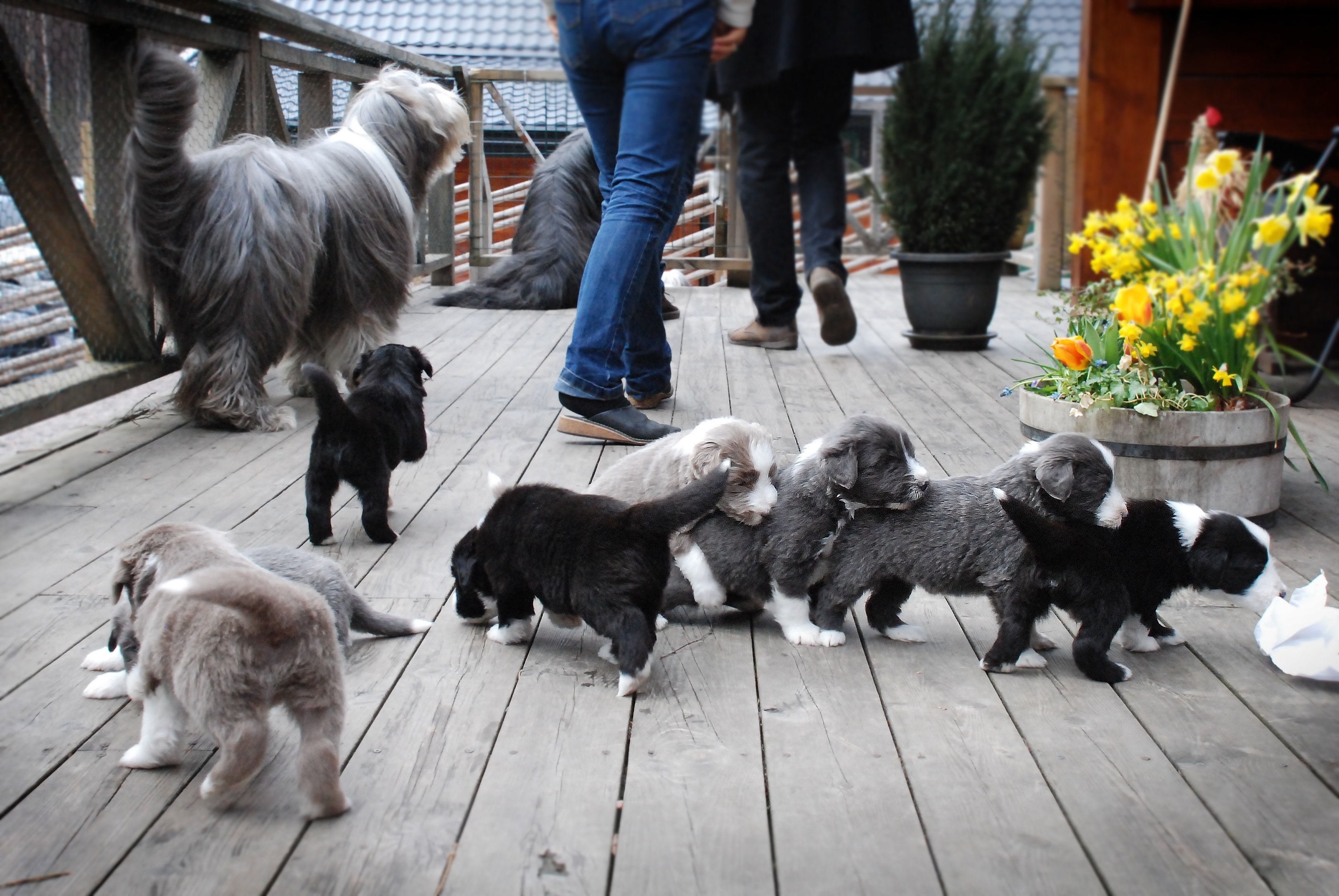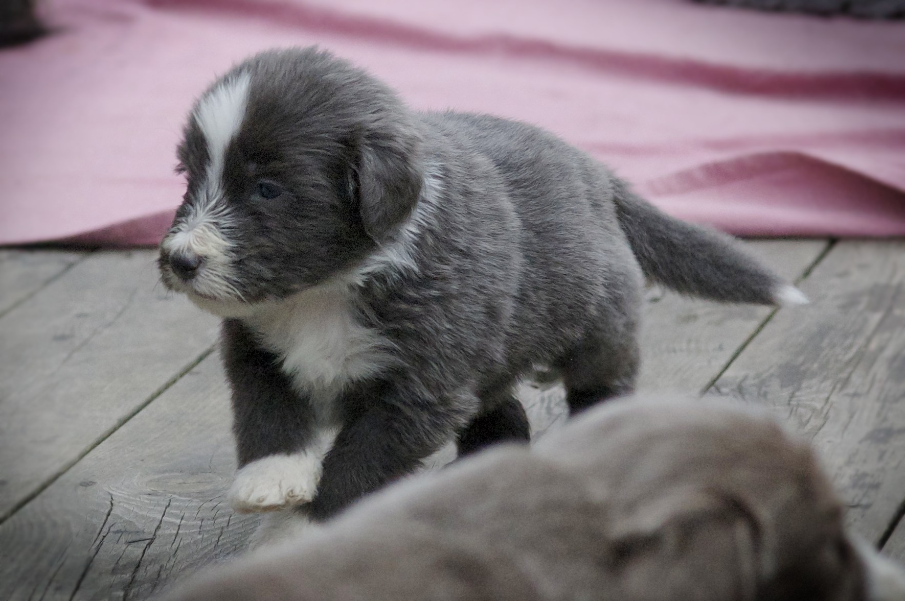 Vi hoppas nu på lite varmare väder och solsken, för då ska valparna få gå ut i trädgården.