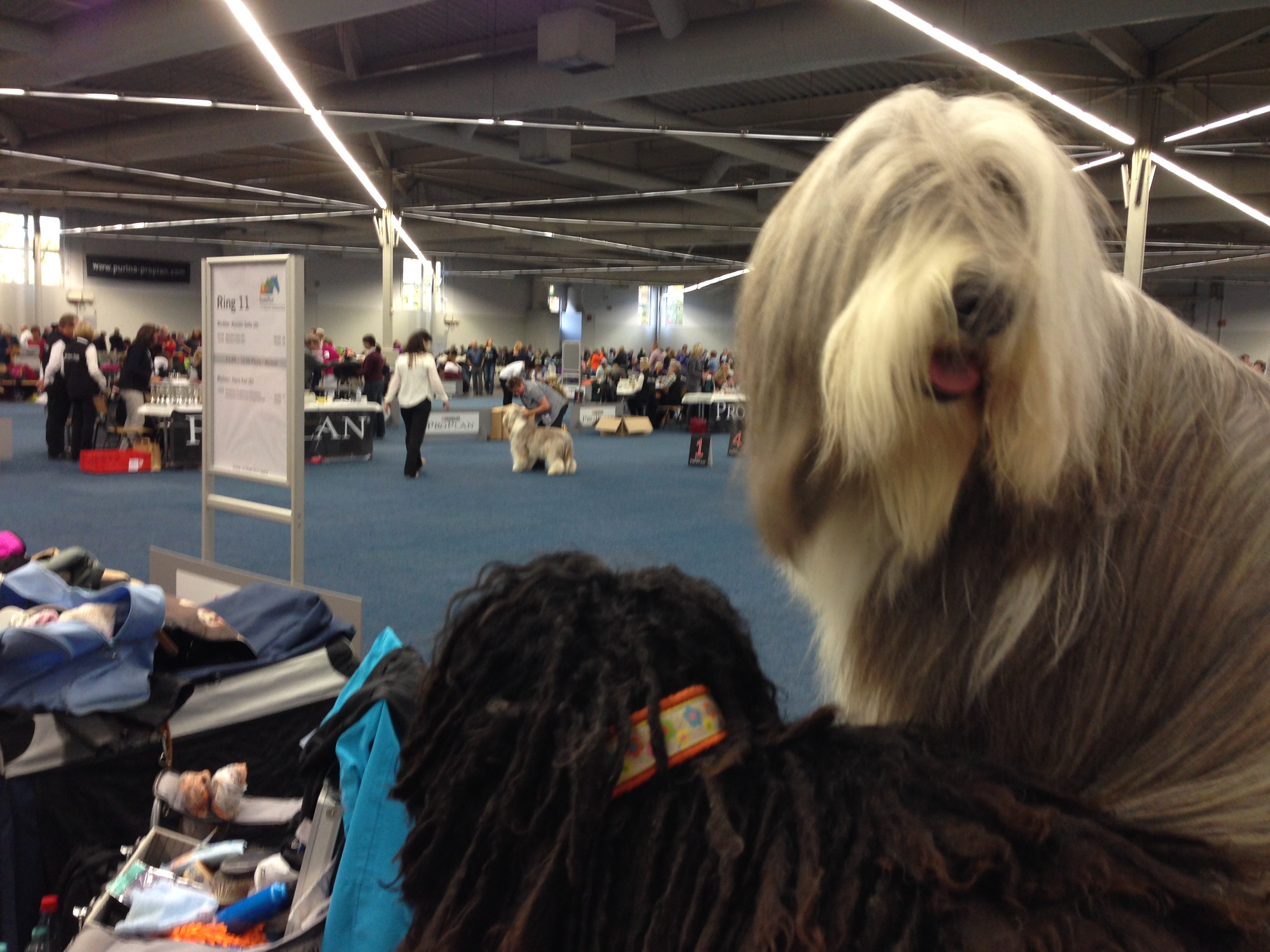 Förre helgen åkte jag tillsammans med Esters uppfödare, Stefan, till Dortmund i Tyskland. Jag hade Sally och Ester med mig och Stefan hade Esters pappa Rya och puli-junioren Cikta med sig. Det var dubbelutställning och vallhundarna tävlade på lördagen och söndagen.