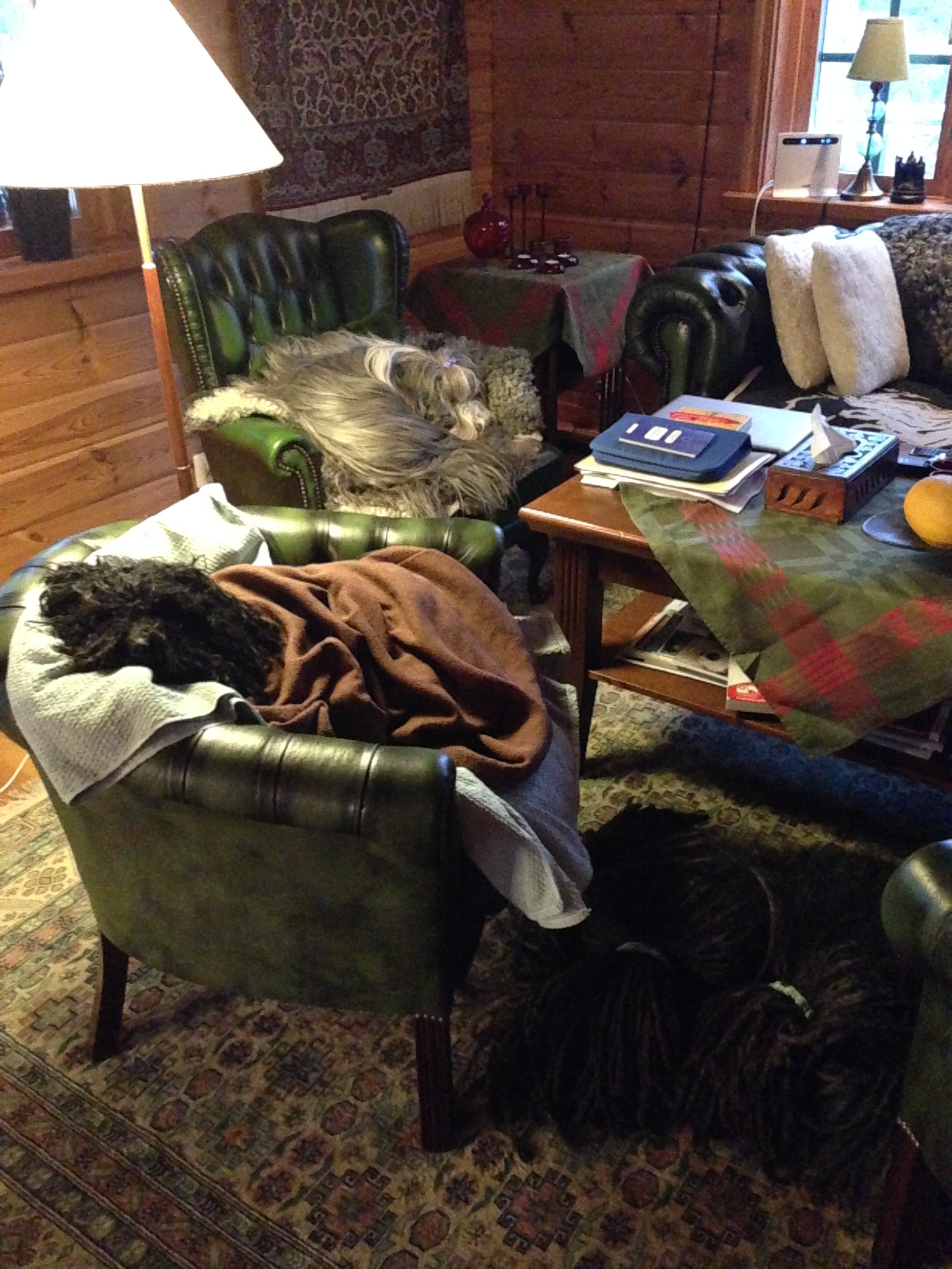 Vi förbereder oss inför resan till Finland. Det ska bli så roligt att bo i Helsingfors och delta på hundutställningar i tre dagar. Ester är nybadad (se bilden nedan). Imorgon är det Ellas tur att bli duschad.
