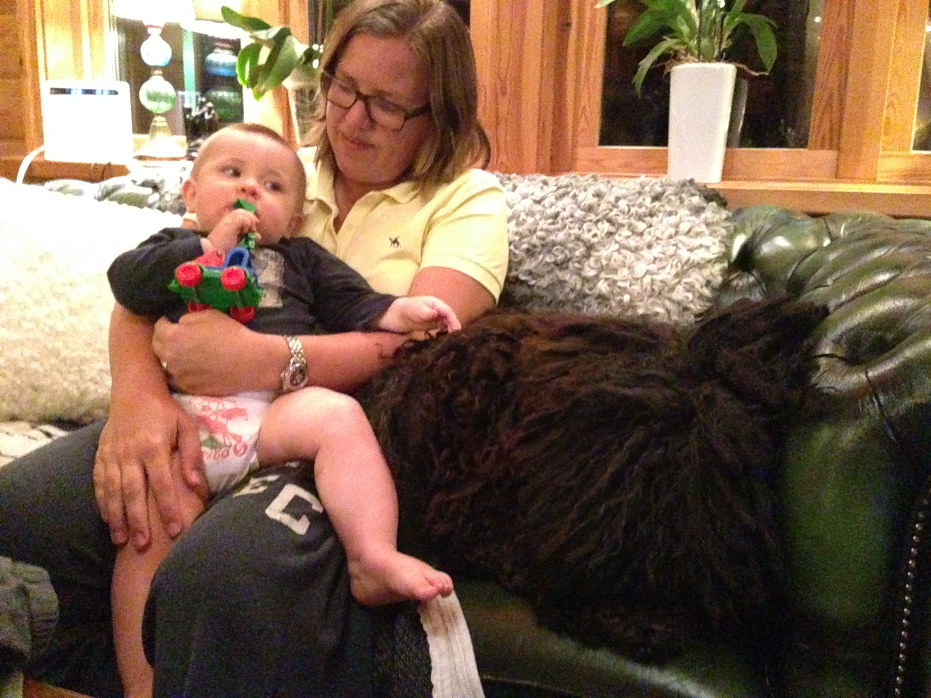 Idag kom Emma och Oliver till Äskilt. Oliver tycker mycket om hundarna! Här myser han i soffan med mamma och Ester.