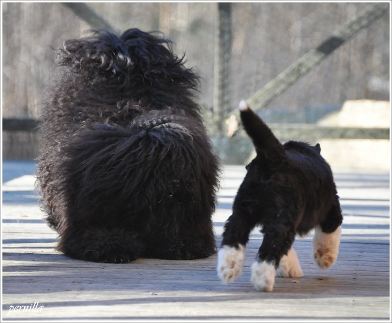 Då hon kom till oss på Vallklanens kennel så blev hon snabbt en del av flocken med beardisar. Det var Ella som blev Esters nya lekkamrat.