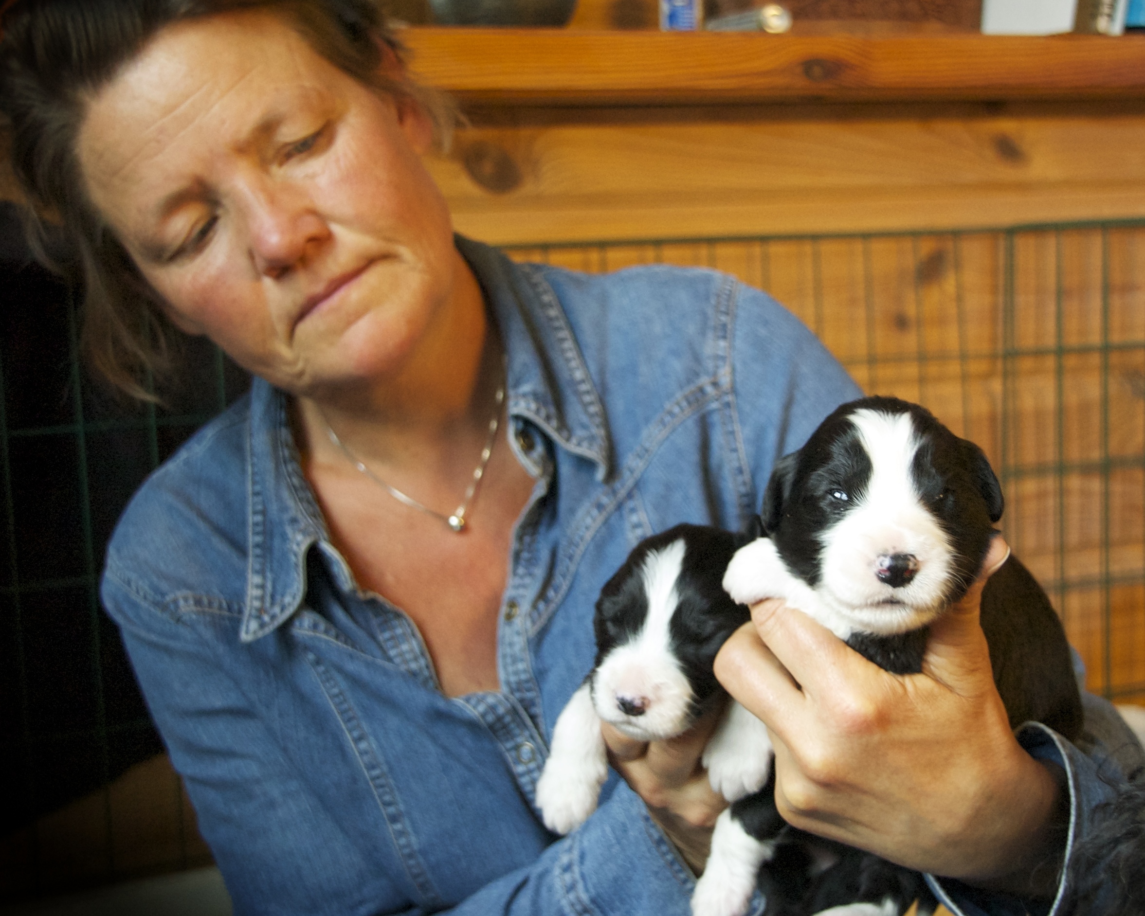Nu tillåter Sally även Wilma att komma fram till valparna.