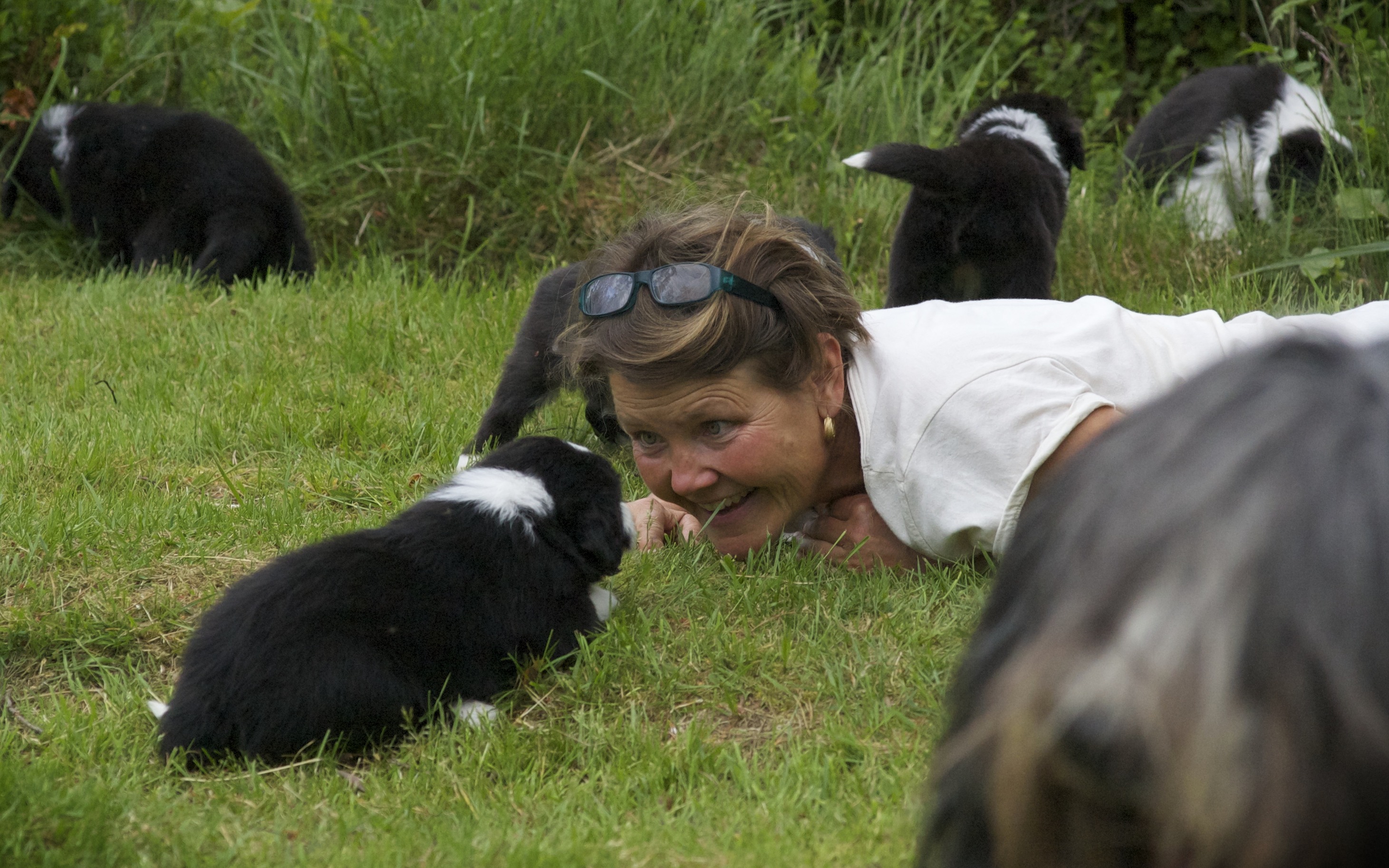 När vi tar med oss alla valparna ut i trädgården så får vi räkna till 11 om och om igen. Det är alltid någon valp som springer iväg på sin egen lilla upptäcktsfärd.