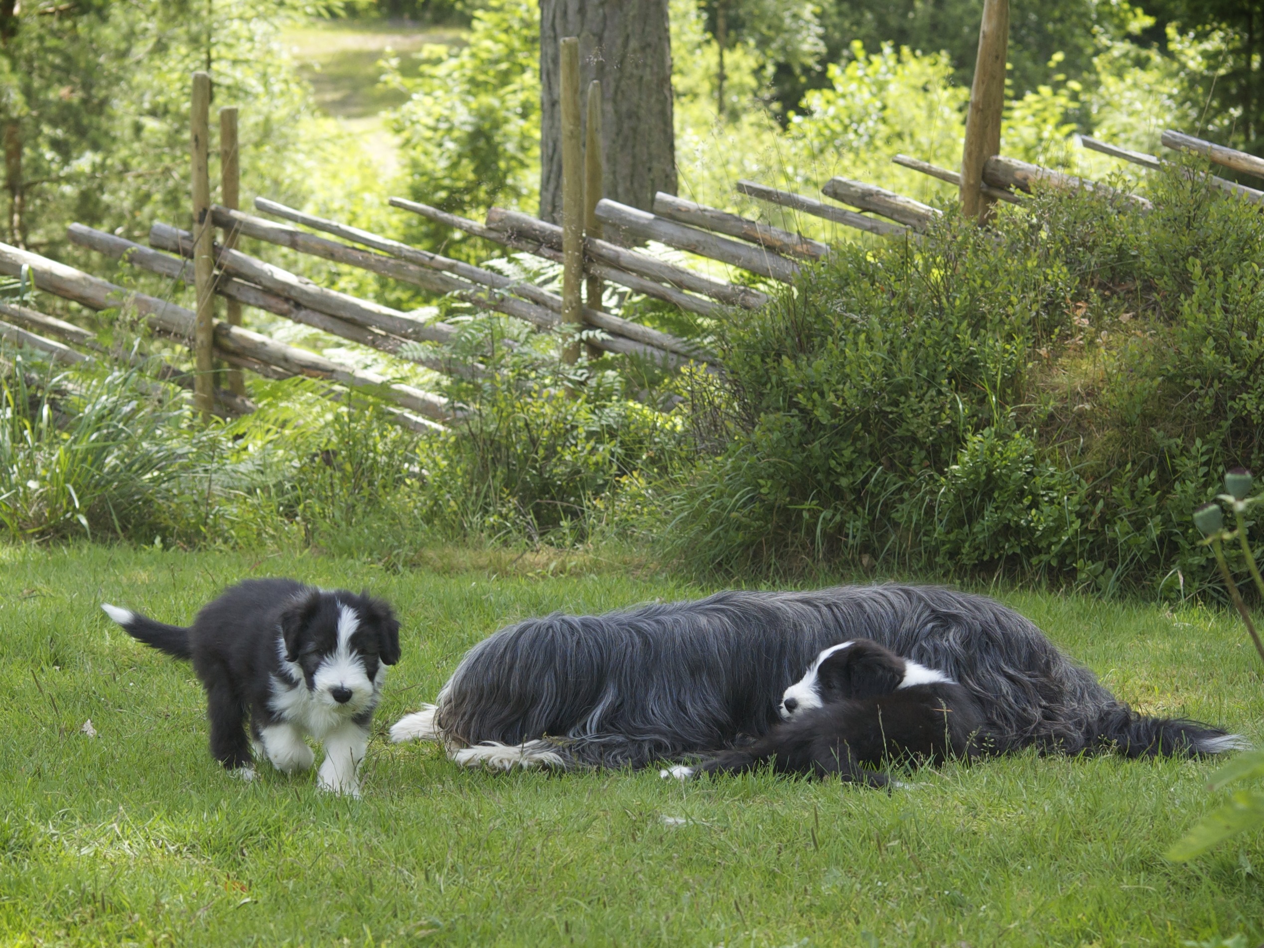 Moster Wilma är fortfarande kärleksfull mot valparna. Hon tycker om att mysa med dem.