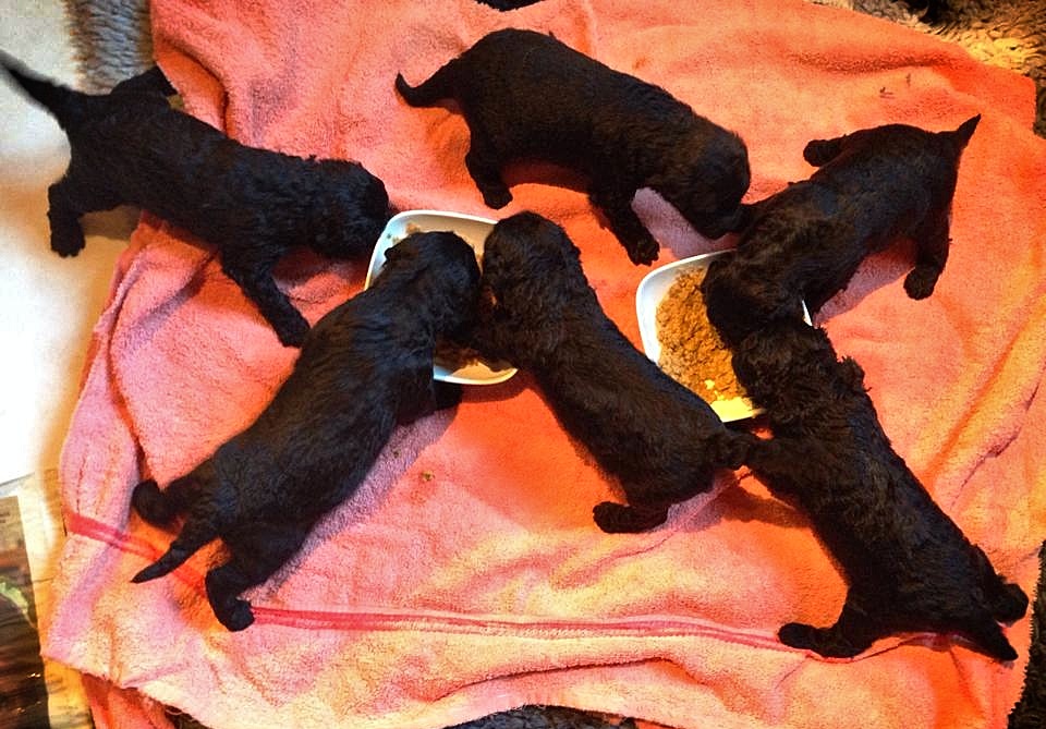 Pulivalparna är tre veckor gamla och de har verkligen utvecklats mycket den senaste veckan. Det är några dagar sedan de fick smaka på valpfoder för första gången. Även om kortet bara är några dagar gammalt så känns det som att valparna har förändrats och vuxit mycket sedan det togs.