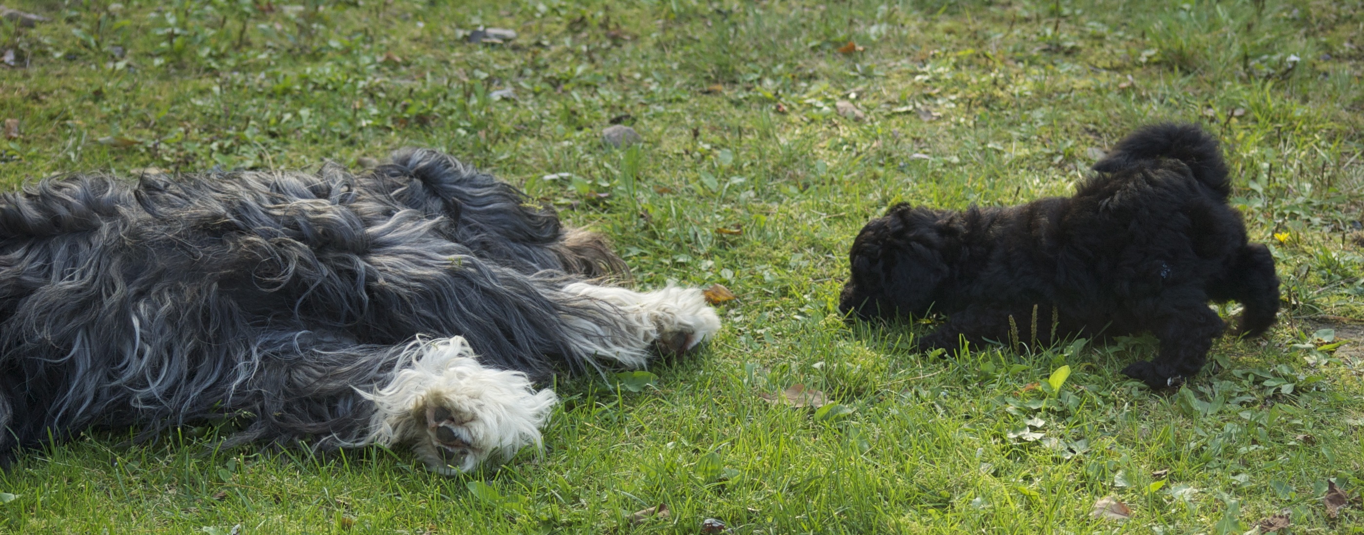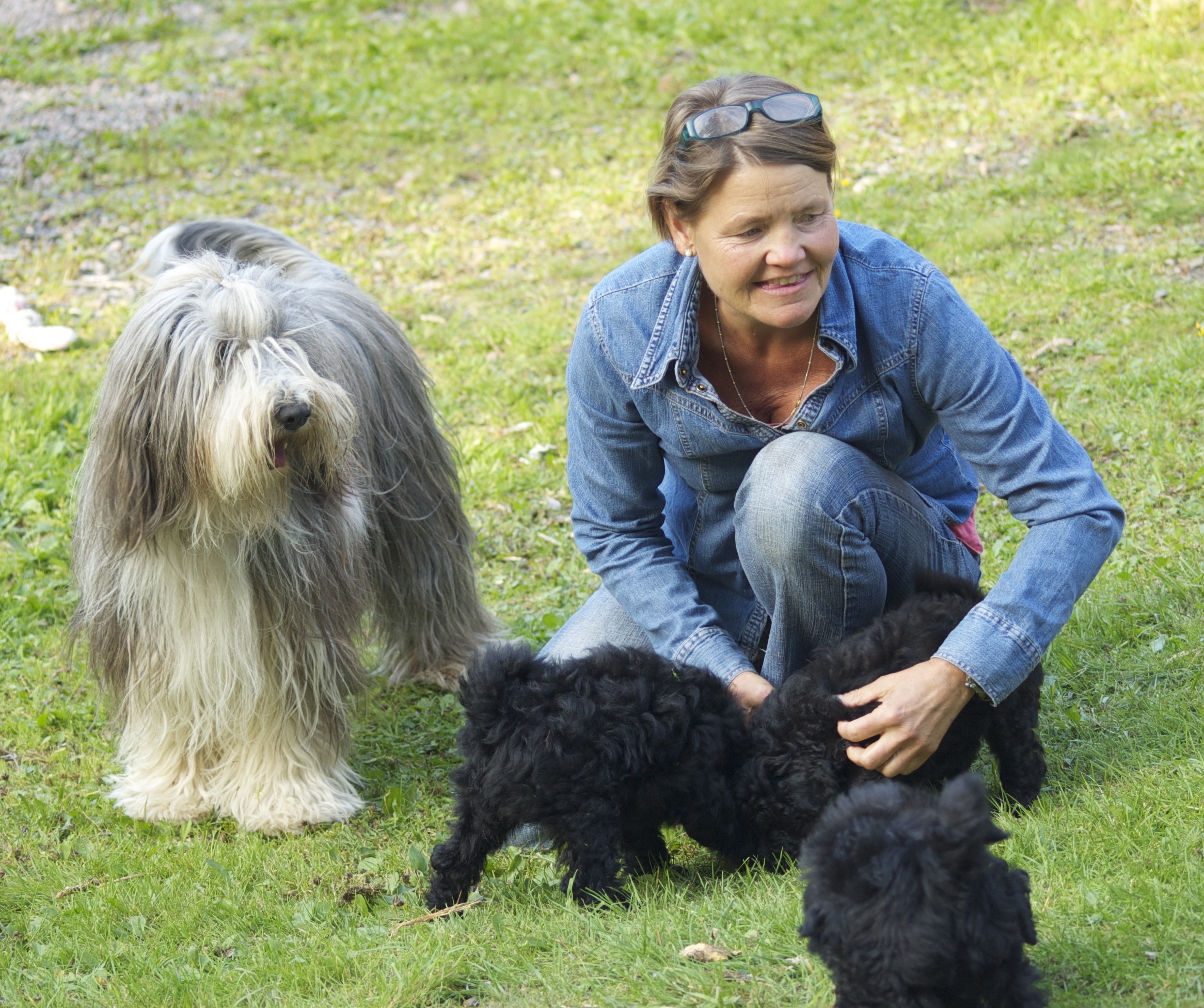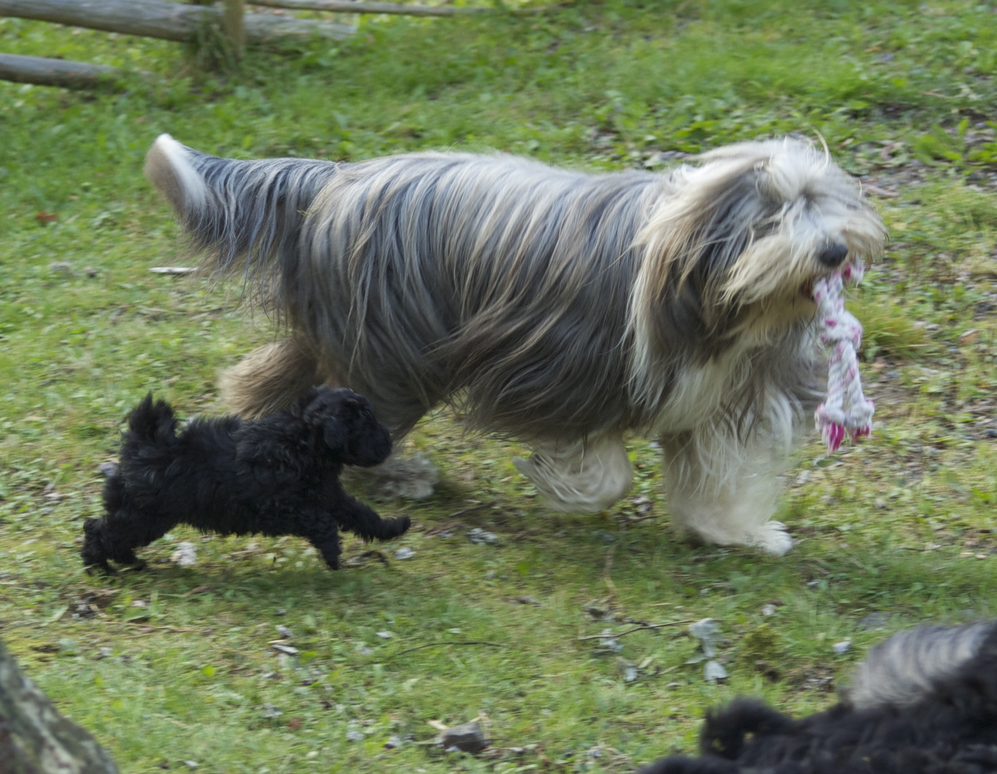 Pulivalparna är snart 8 veckor och det är full fart på dem. De är ivriga att utforska världen. De älskar att kampa, brottas och jaga varandra. De är alerta, hoppar högt, är modiga när de springer genom högt blåbärsris, klättrar upp på stenar och på stubben och sedan slänger sig ut. De bär på pinnar och hundleksaker och retas med varandra. De springer framåt i full fart och vänder sig sedan på en femkrona. Det är riktigt roligt att se hur de utvecklar sin motorik och sitt beteende.
