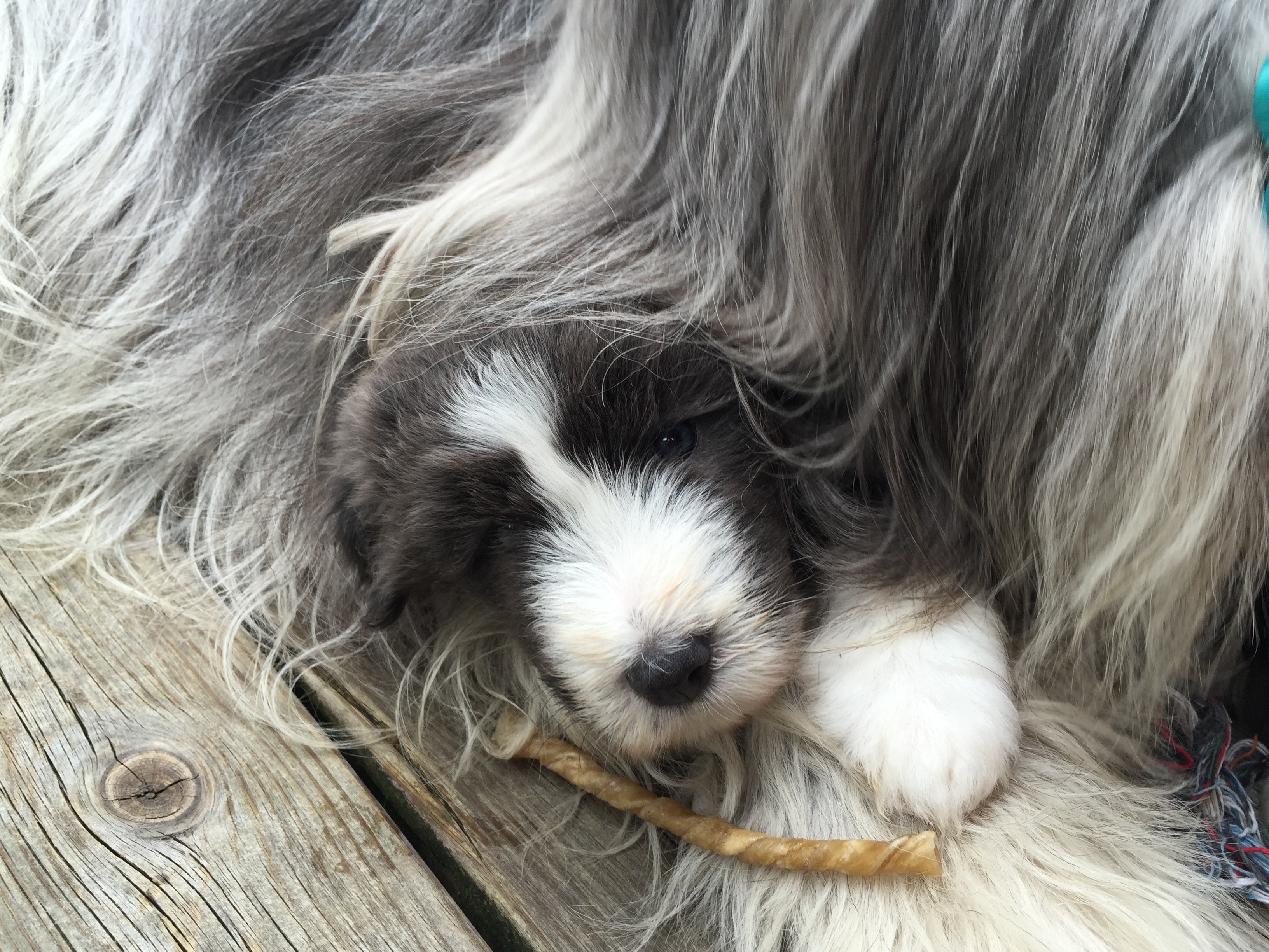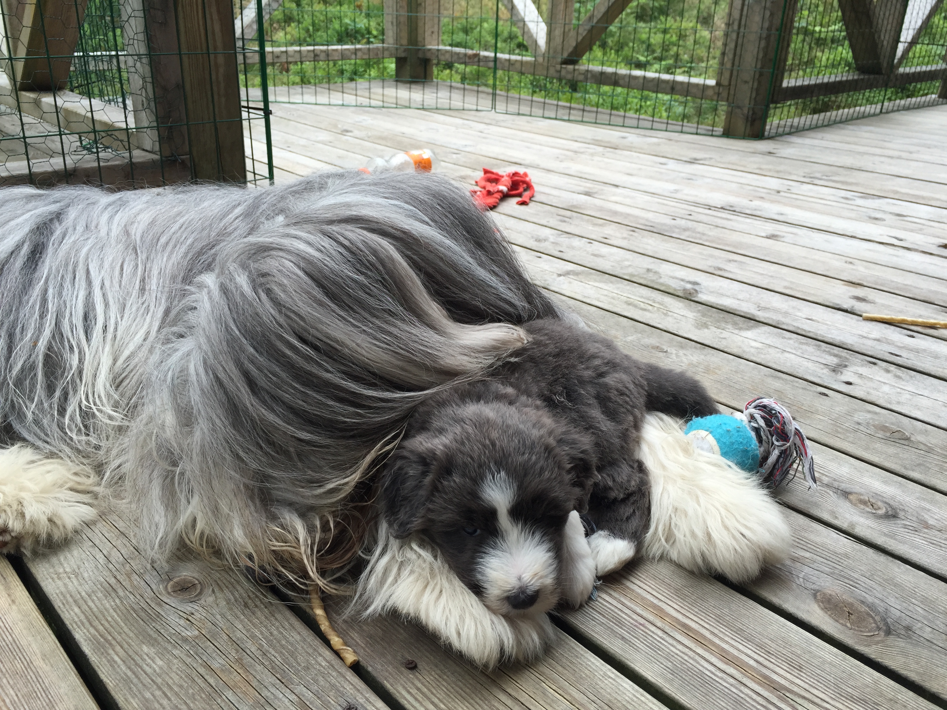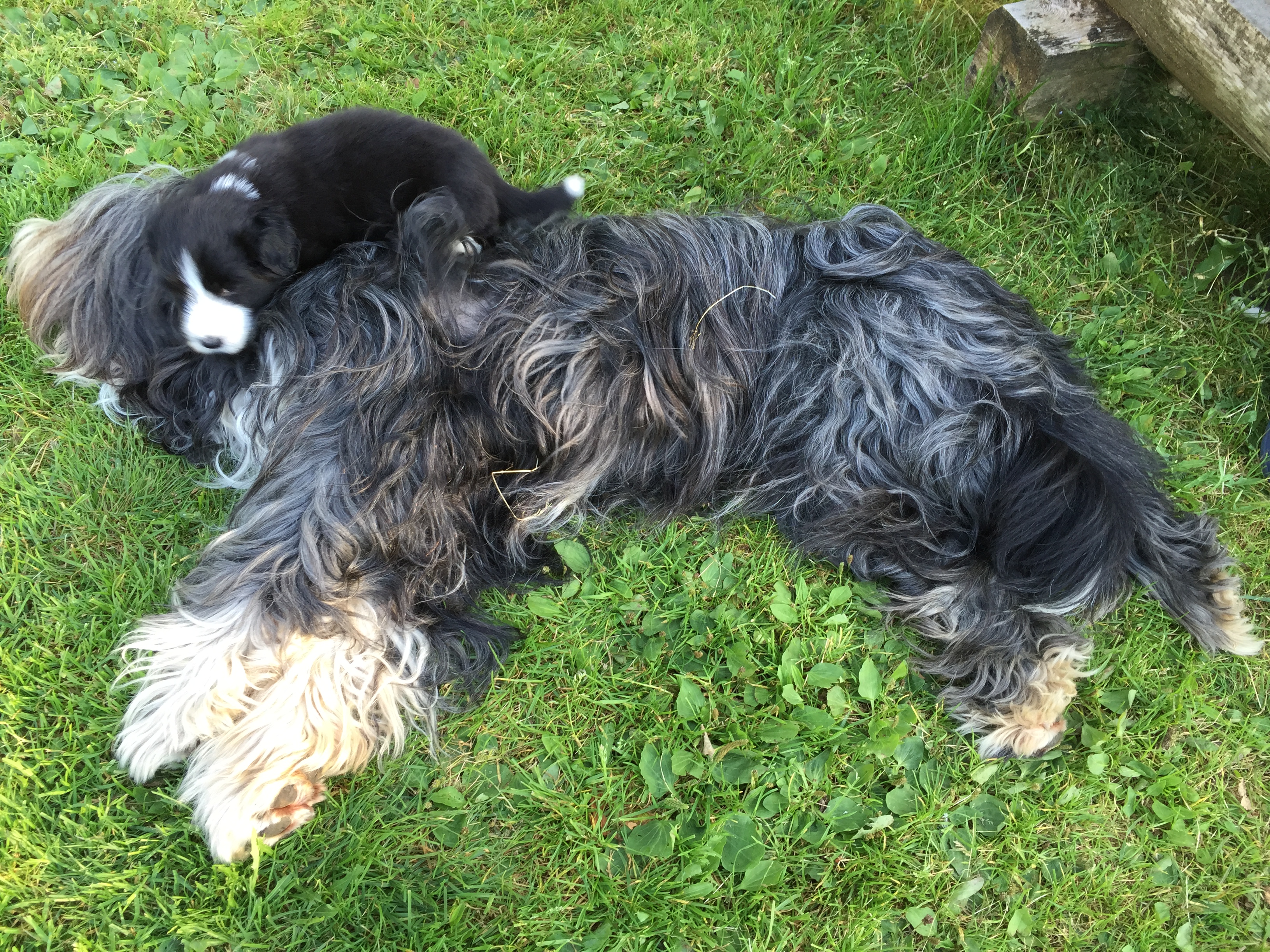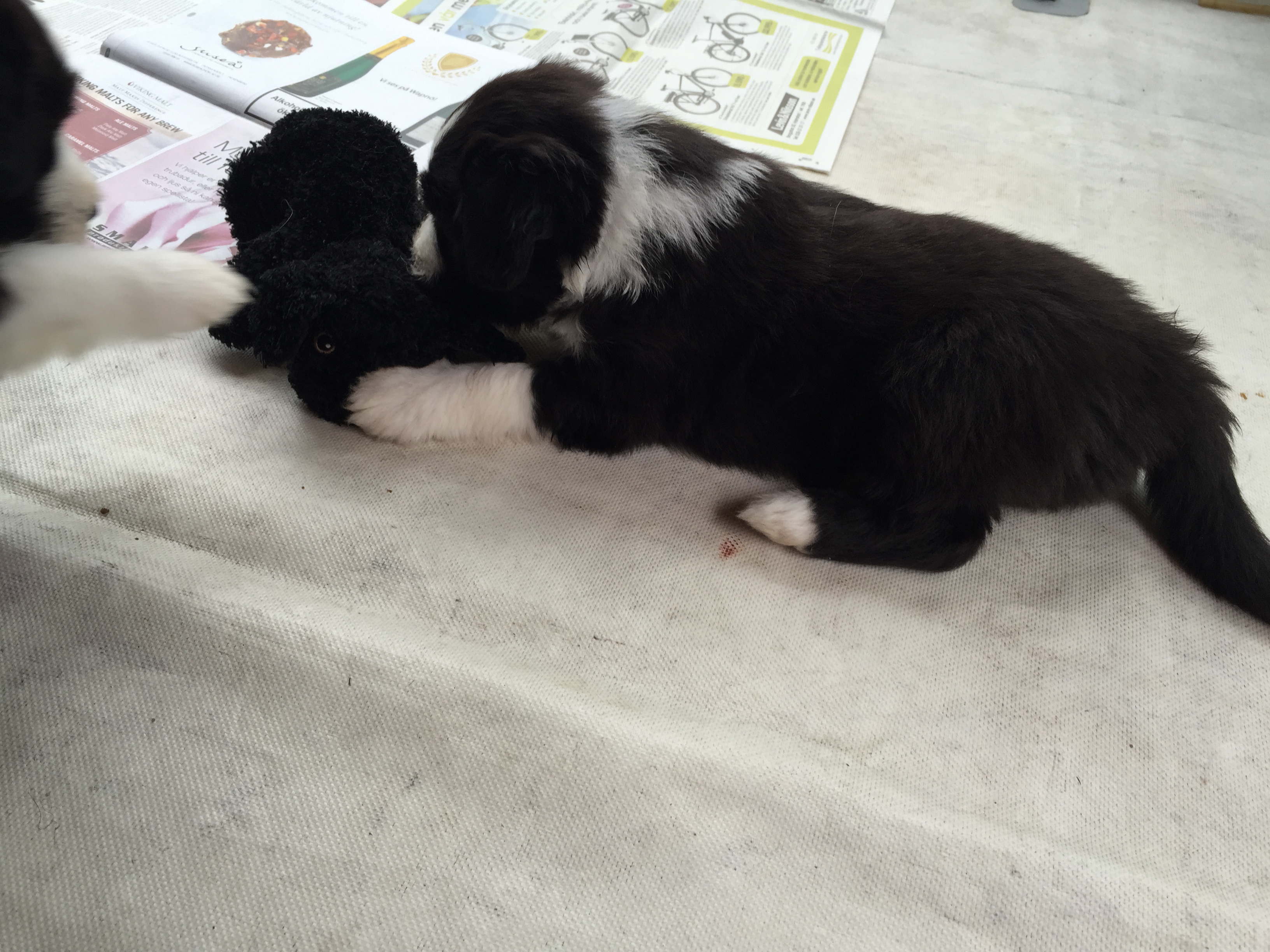 Idag är valparna 5 veckor och idag hade de morgon-mys med sim mamma på altanen. De har vuxit bra och är alla ”små tjockisar”.