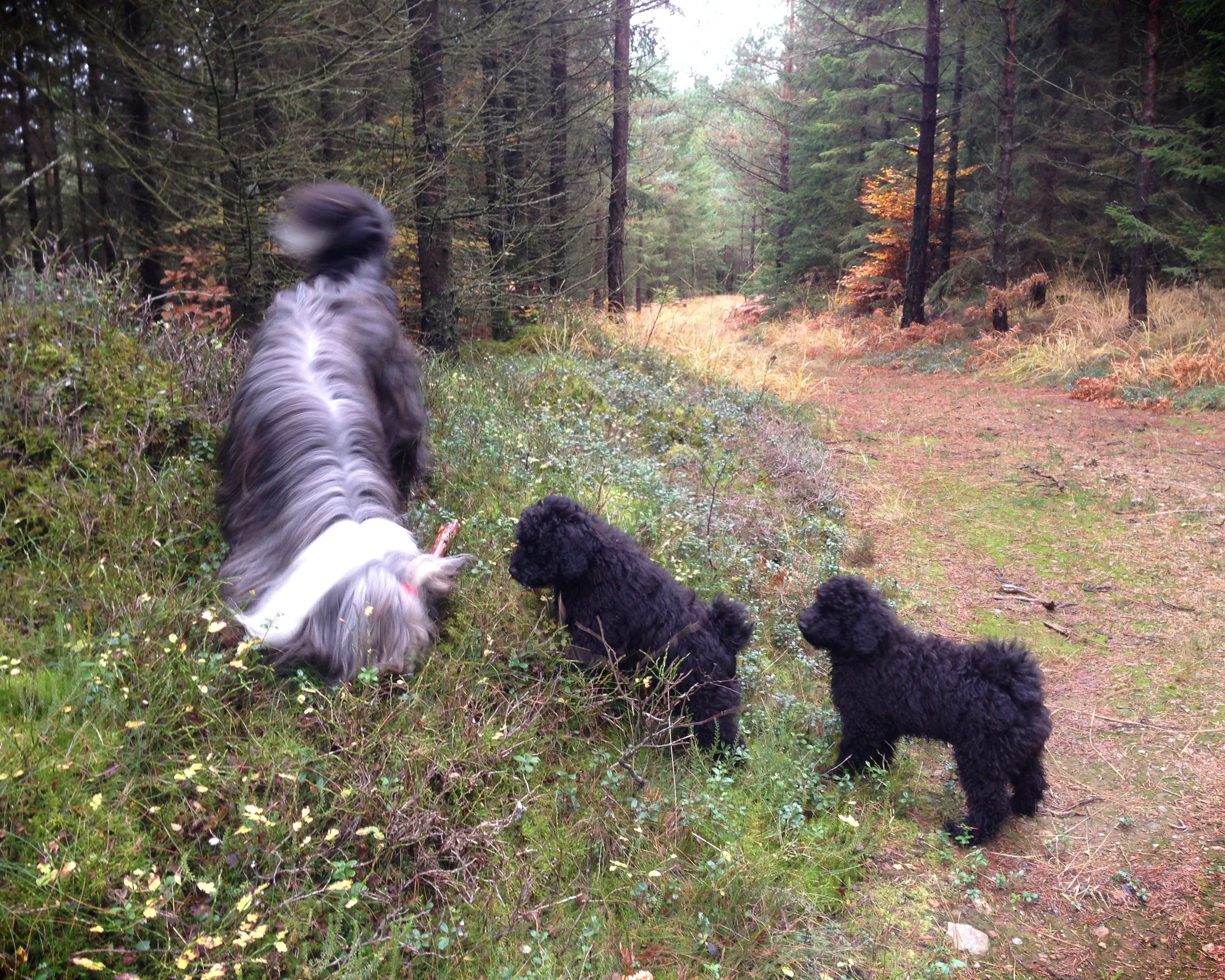 En dag denna veckan gick vi ut i skogen och plockade svamp. Valparna fick följa med.
