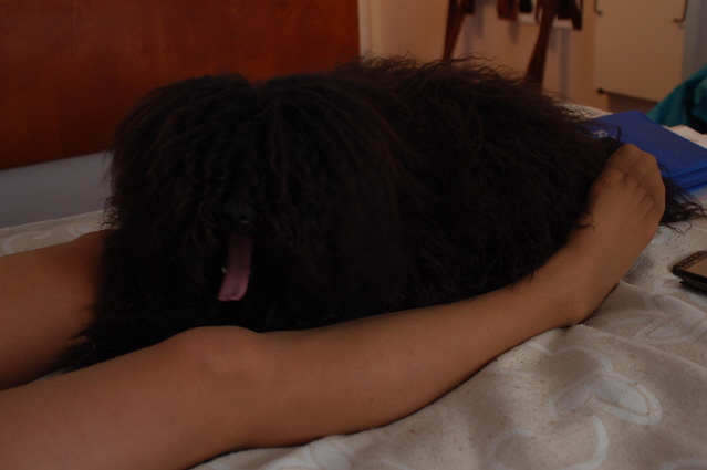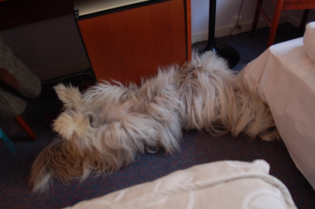 Jesper deltog även båda dagarna i finalen för bästa uppfödargrupp. Den första dagen var det 27 grupper i stora ringen och Jespers blev 2a! Jag satt och hejade på med Rut i knät. Mina beardisar var trötta efter en lång dag i utställningshallen.