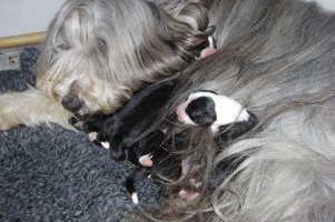Sallys och Scotts valpar föddes den 16/1 2012. Det blev fyra hanar och två tikar, alla är svarta.