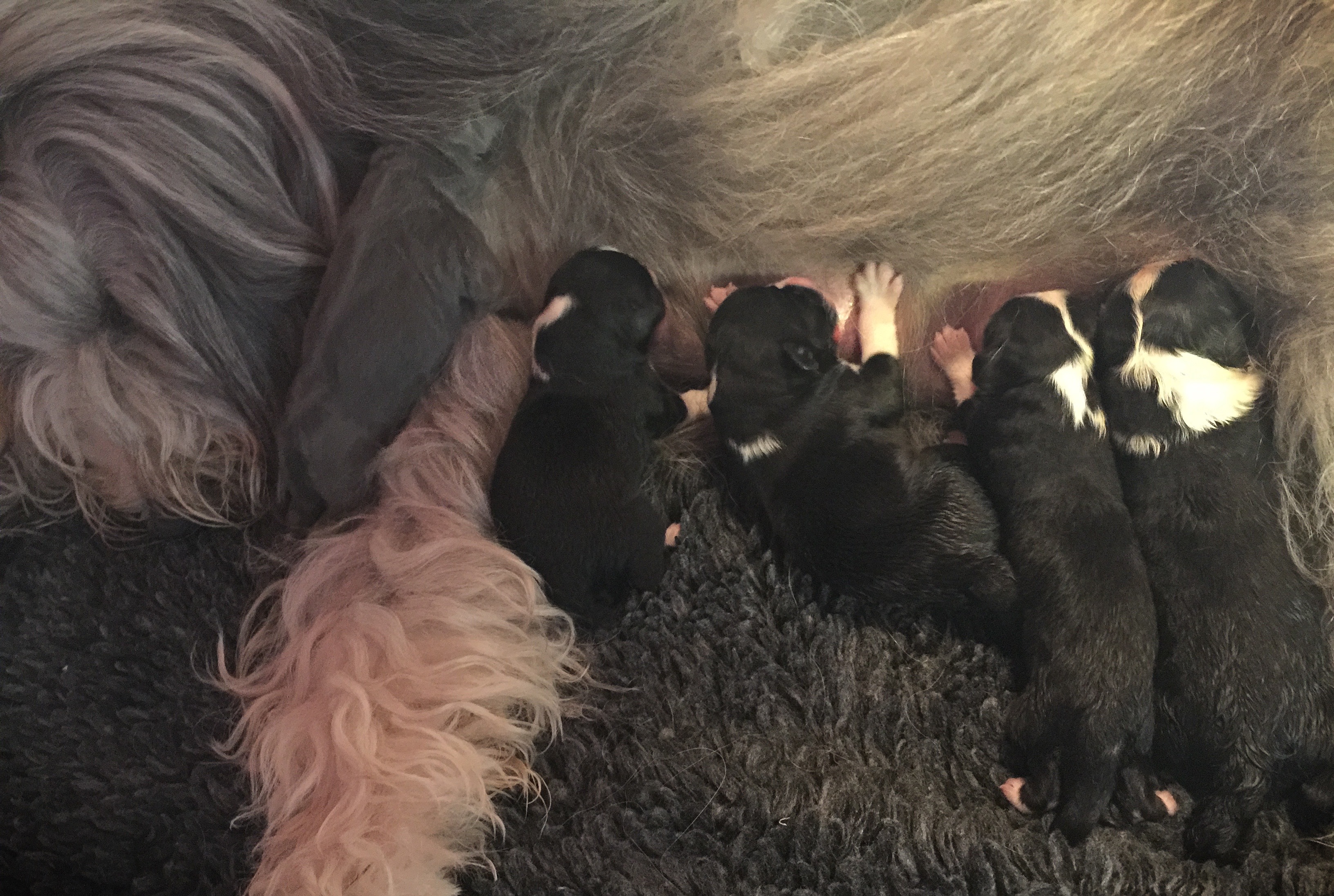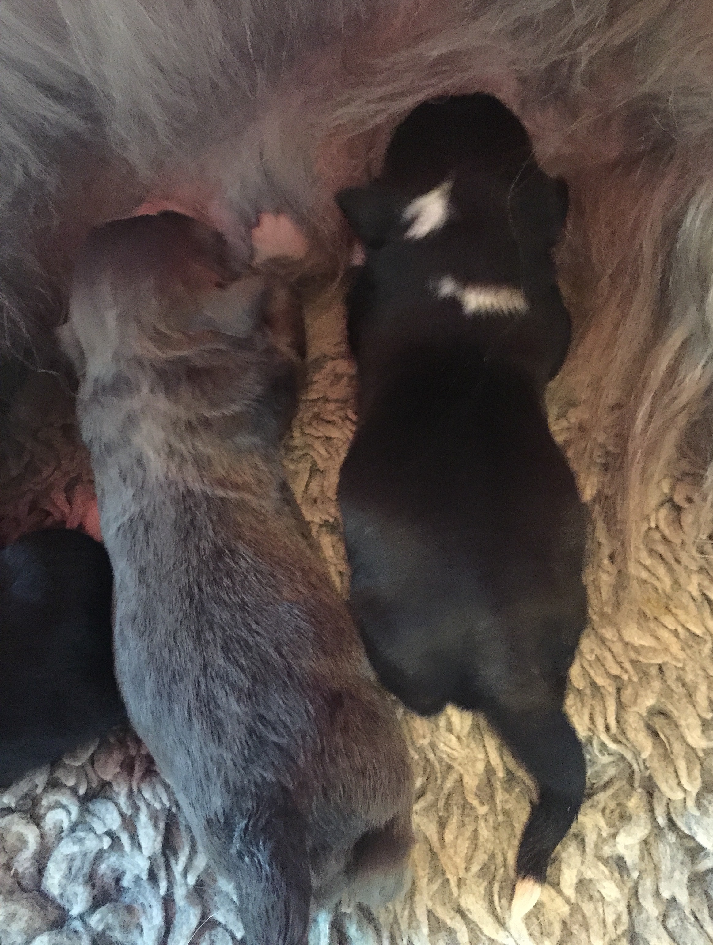 Pappa till valparna är Leo, Alistair’s Uppercut. Allting gick väldigt bra och valpnignen gick snabbt. Nova är lugn och trygg och tar väl hand om de små, precis som det ska vara!